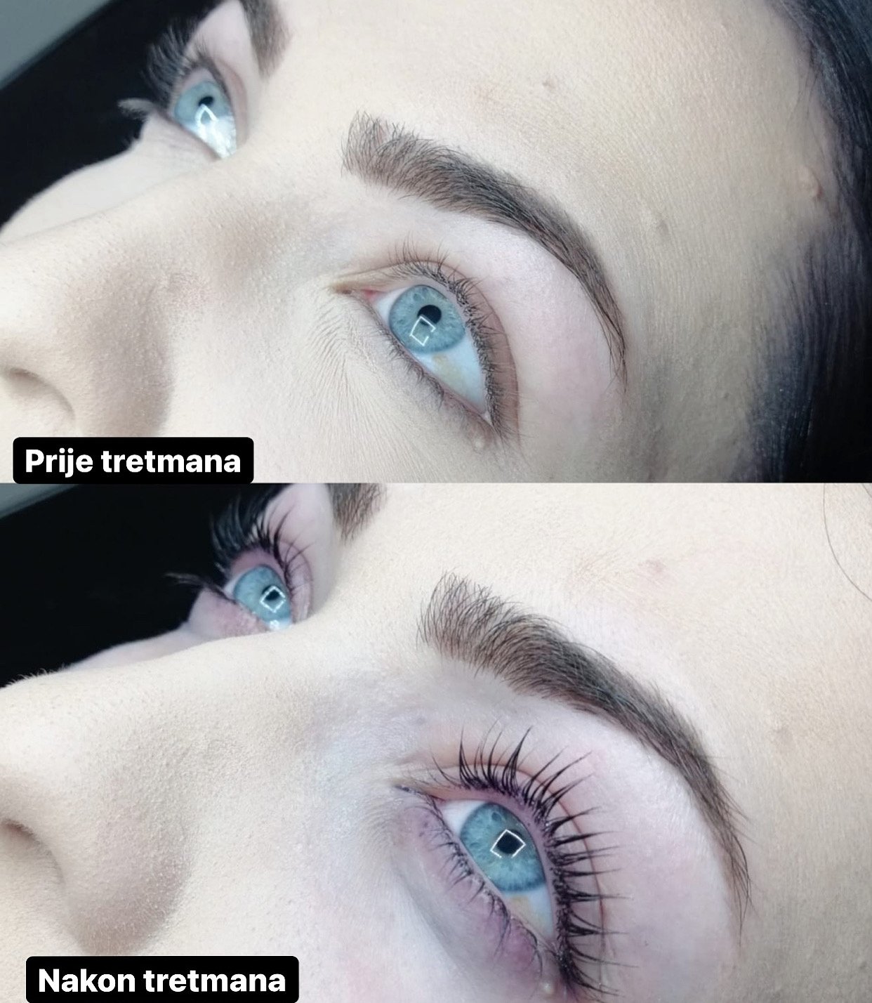 3. Kako se ponašati nakon tretmana?Nakon tretmana trepavice se 24 sata ne smiju močiti – izbjegavajte vodu, pranje vodom ili nekim sredstvima za čišćenje lica, saunu i solarij te uvijanje trepavica uvijačem, a ne preporučuje se niti korištenje maskare taj prvi cijeli dan.
